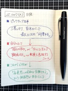 今朝のジャーナリング(3色、色分け)