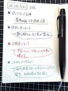 今朝のジャーナリング。◼️ピックアップ記事:基準地価4年連続上昇 東京けん引、海外マネー流入。◼️ボールペン:カヴェコオリジナル(黒)、🟦🟥🟩はカヴェコスポーツ。◼️ノート:NOBLE BOOK(A6)の方眼罫。